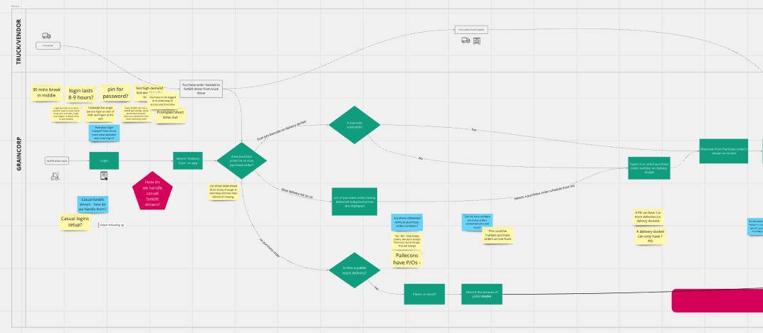 After final design reviews with the Head of UX and engineers, we handed over Sketch files and user journey PDFs. The successful pilot spurred GrainCorp to extend the solution to additional sites, confirming our approach could handle larger-scale operations.