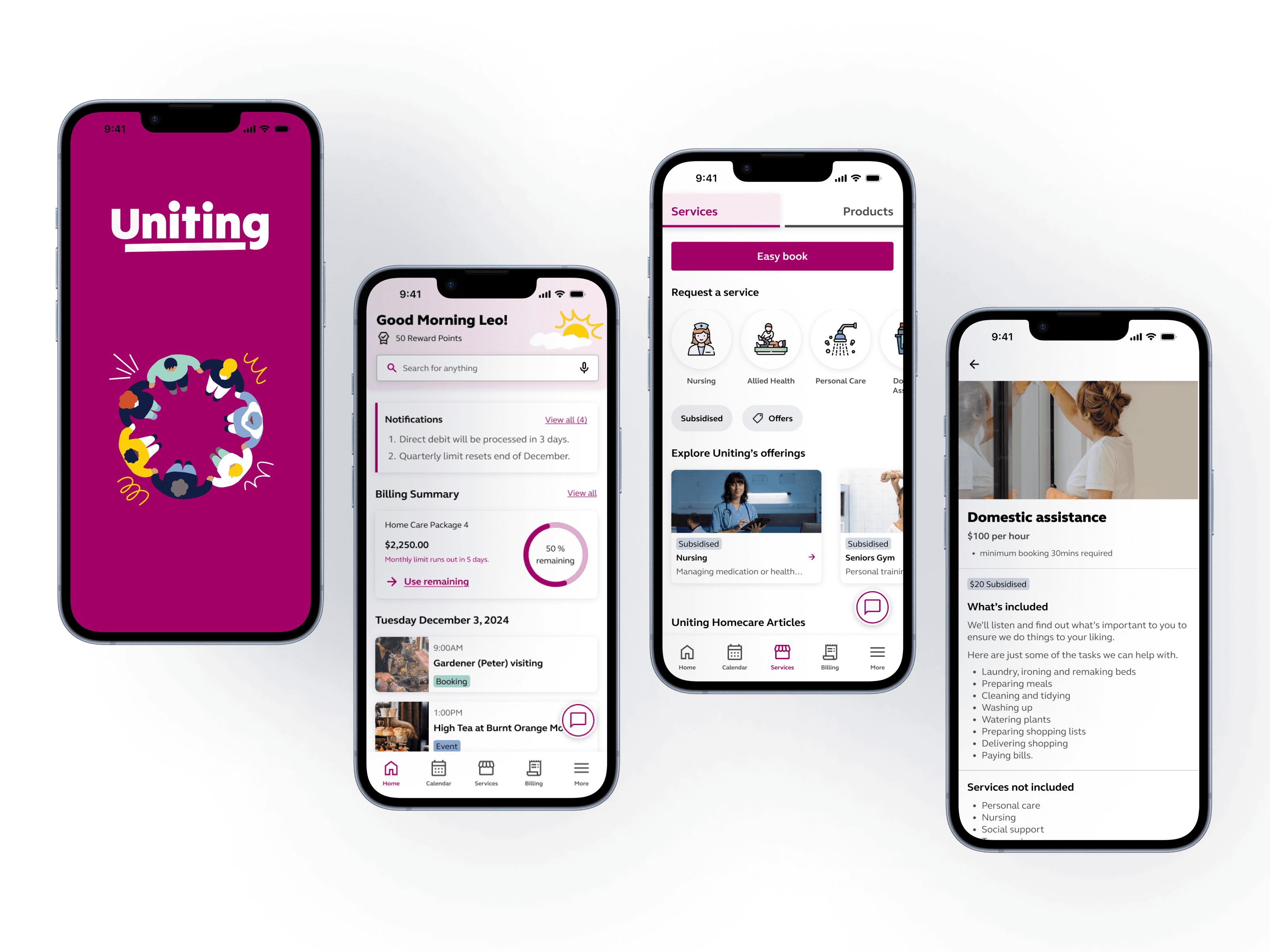 Upon joining Uniting, I discovered strict timelines driven by new legislative changes in aged care. This meant the prototype had to demonstrate compliance and user value simultaneously. I began by mapping HACC requirements and discussing pain points with internal experts.